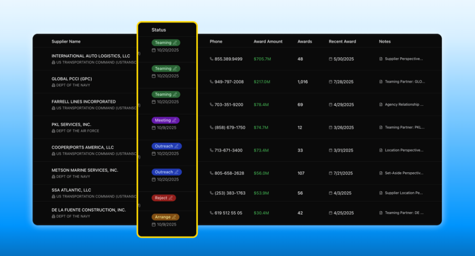 Instead of simply pulling data, our AI rebuilds the connections between solicitations, awards, and real company capabilities. That’s how Proact transforms fragmented government data into clear, actionable teaming intelligence.