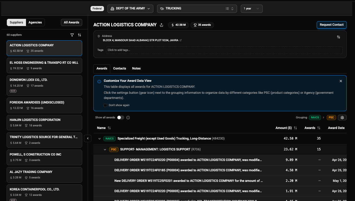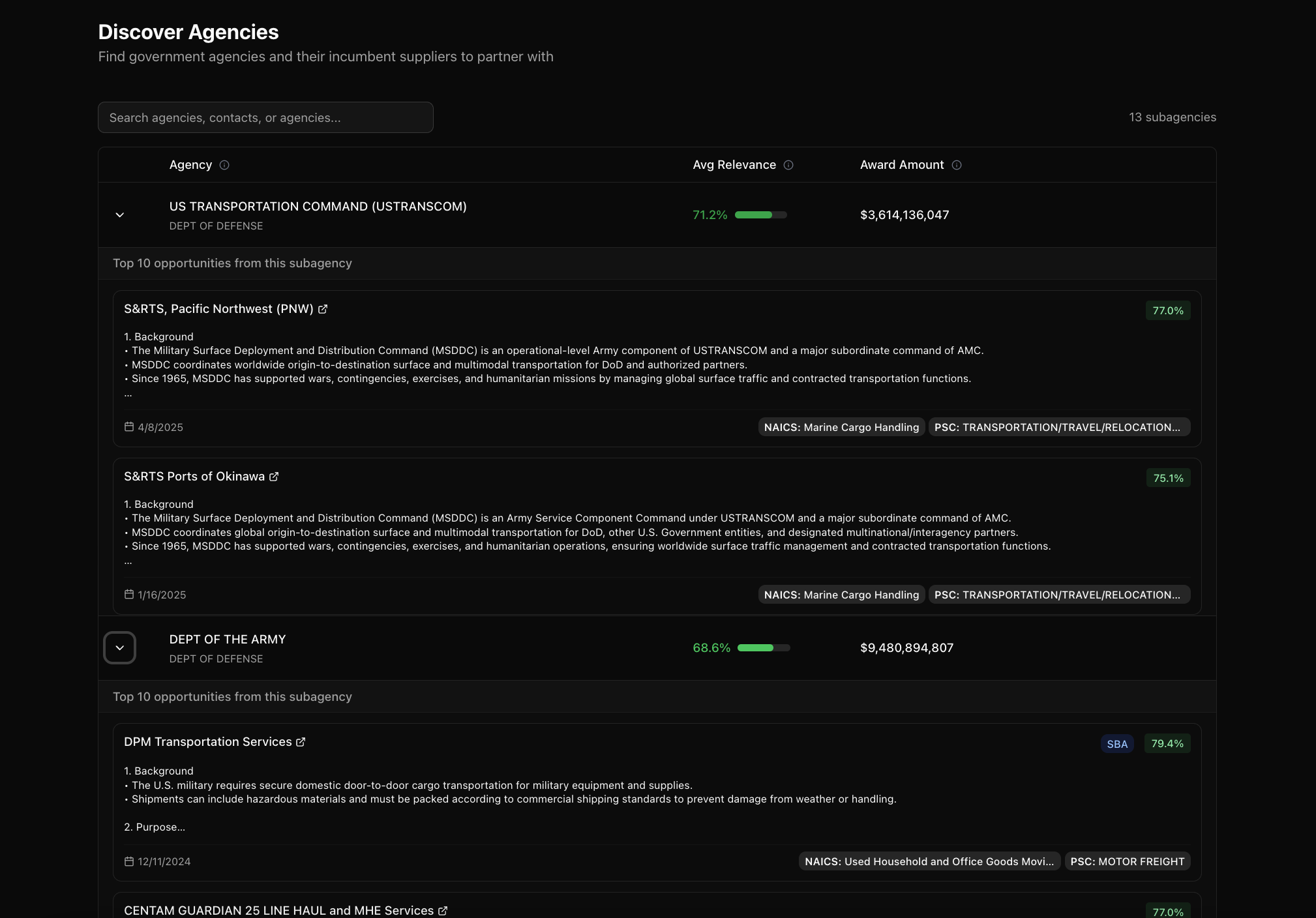 This helps pinpoint which agencies consistently post opportunities that align with your business. We go beyond the agency level to identify the specific office that manages the contracts you should target.